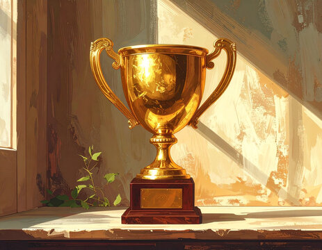 A golden trophy sits on a shelf, honoring achievements and milestones reached in the golden years.