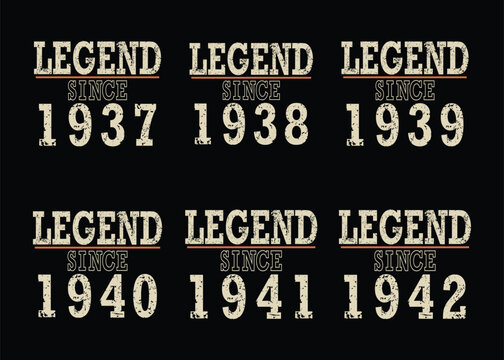 Vintage legend birthday celebration designs featuring milestone years 1937 to 1942 for retro themed party invitations and special event decorations