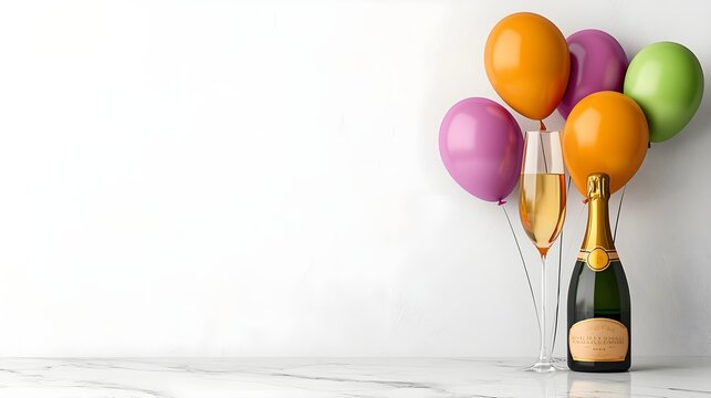 Celebration Setup with Champagne Glass and Colorful Balloons