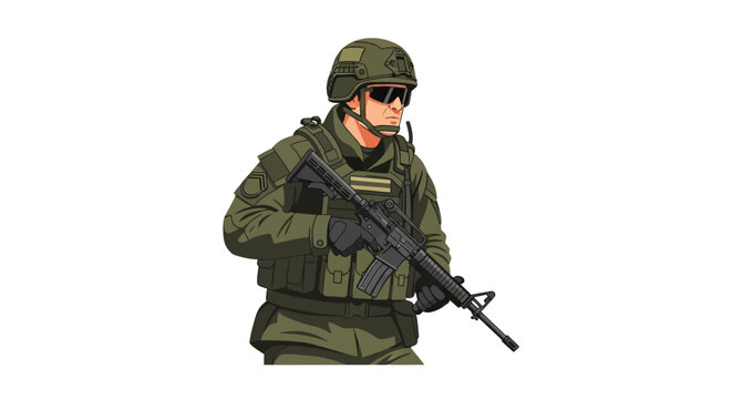 Cartoon soldier in military uniform holding rifle isolated on white background, detailed illustration for army concept design