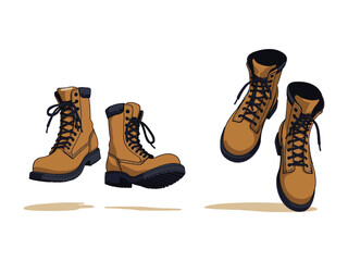 Hiking boots icons set. Colorful hiking boot icons represent various styles of footwear for outdoor adventures, suitable for trekking and exploring nature
