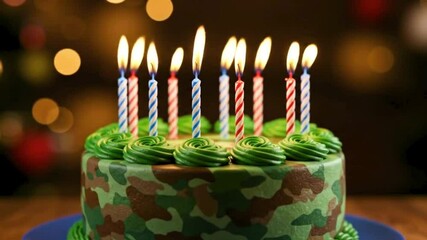 Celebrate military birthday with camo cake and candles for army themed party idea