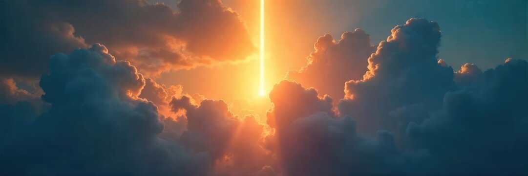 Radiant Light Piercing Dark Clouds Hope, Enlightenment, and Spiritual Awakening