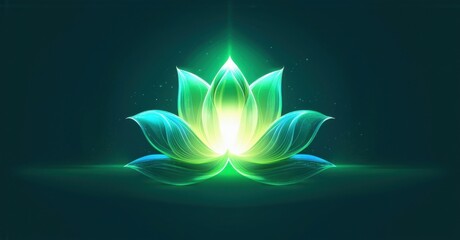 Vibrant green and dark blue mindfulness meditation app icon with lotus flower and soft glowing aura realistic detailed glossy style round square shape modern app icon bold vibra