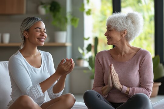 Diverse group practicing yoga in studio promoting wellness and tranquility