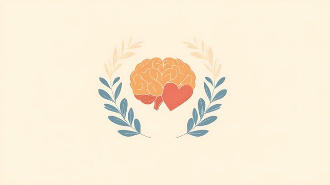 A calm and soft-toned logo for World Mental Health Day, incorporating symbols of a brain, heart, and mindfulness for mental health promotion