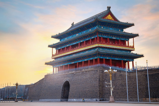 Beijing, China - Jan 17 2020: Qianmen or Zhengyangmen Gate, first built in 1419 during the Ming dynasty, situated at the southern side of Tiananmen Square
