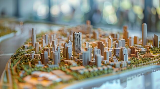 A vibrant, miniature cityscape featuring colorful buildings and greenery, representing modern urban development and sustainability.
