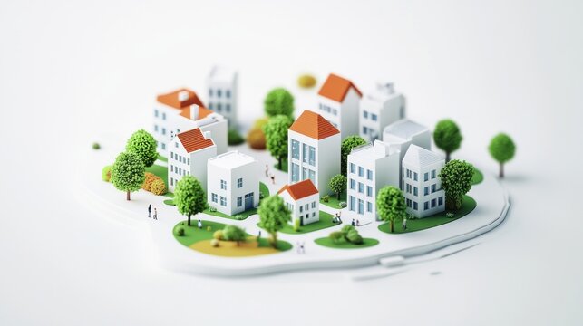 A miniature cityscape featuring eco-friendly buildings and greenery, symbolizing sustainable living and urban development in harmony with nature.