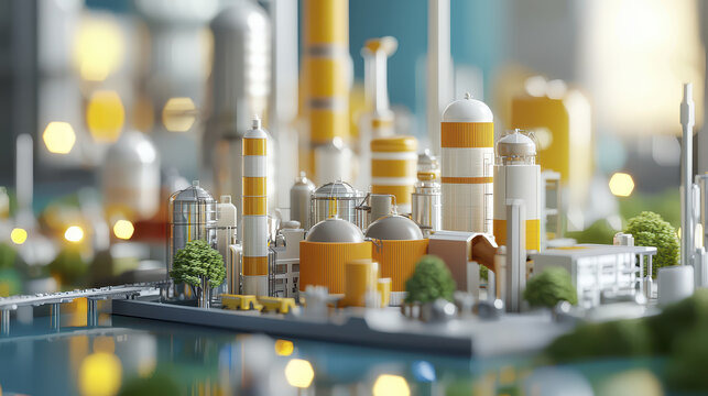 Vibrant industrial landscape featuring colorful factories and structures, showcasing modern architecture and technology