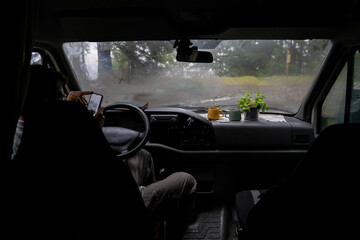 Travelers on a trip in a minibus in County Wicklow near Glendalough, Ireland