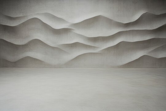 Sculpted wall creates depth with flowing curves, enhancing minim
