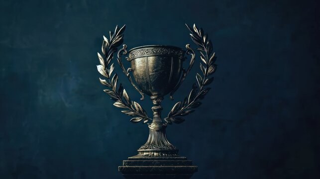 A minimalist design of a trophy and laurel wreath, symbolizing victory and success as a winner