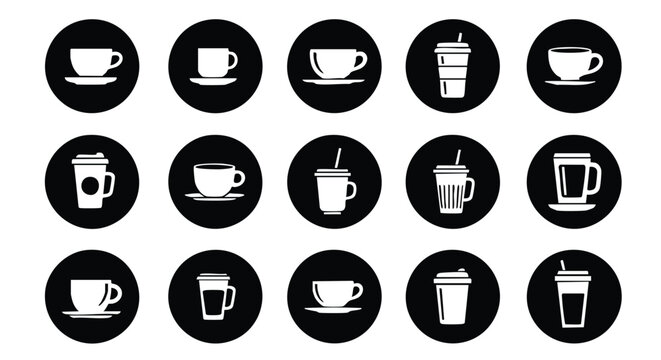 Modern coffee icon set for cafe branding and menu design projects, black and white minimalist graphics