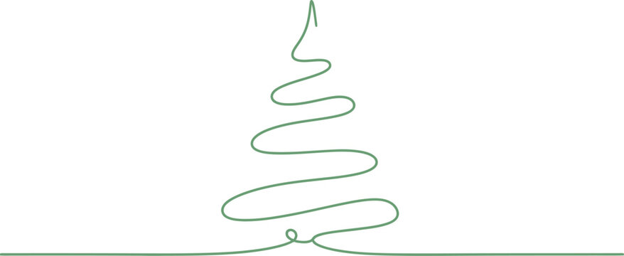 Minimalist continuous line drawing of a christmas tree isolated on white background