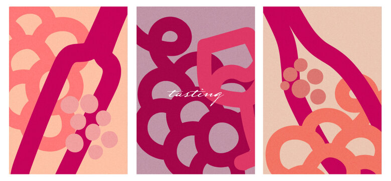 hand-drawn wine event invitations – retro minimalist vector posters with textured backgrounds
