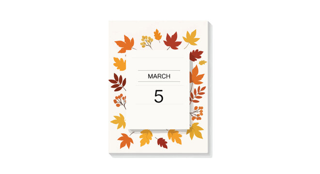 Stylized calendar page for March 5 featuring autumnal leaves frame, suggesting a seasonal event or reminder on a simple background
