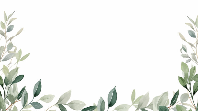 Eucalyptus leaves frame isolated on white background. Greenery wedding simple minimalist invitation. Watercolor style card.