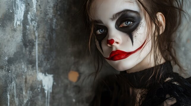 A beauty setup featuring a model in detailed Halloween makeup and a minimalist look