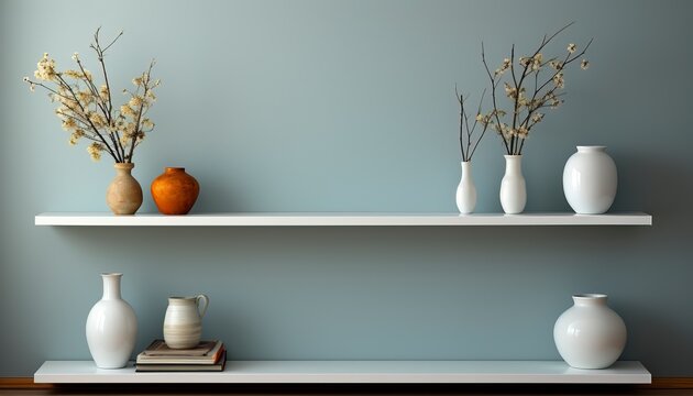 Modern, minimalist wall-mounted shelving unit, featuring a mix of light oak and dark gray panels