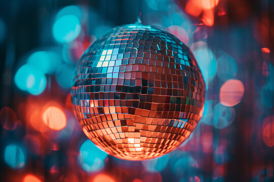 elegance of a minimalist disco ball centerpiece at a celebration, with subtle lighting highlighting its reflective surfaces, adding a touch of glamour to the event in a minimalisti