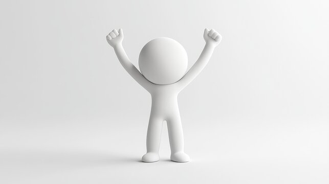 Joyful White 3D Person Celebrating Success - Minimalist Design