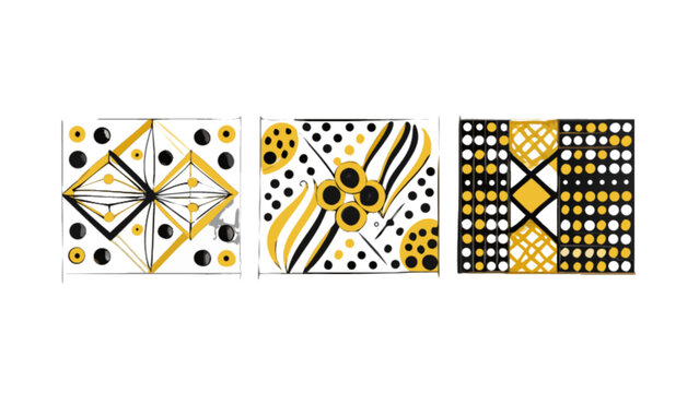 Abstract geometric art pattern design with circles and lines in black and yellow color illustration