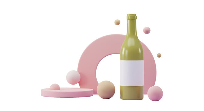 Isolated Minimalist Wine Bottle on Pastel Geometric Display