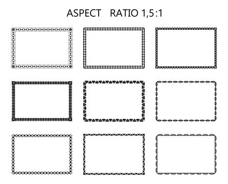 Set of rectangular minimalistic black frames isolated on white background. Simple laconic style. Borders for design of business cards, banners, text messages, printing on paper. Vector illustration