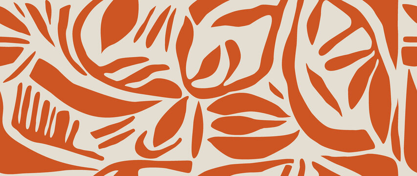Pattern seamless background. Minimalistic abstract floral pattern. Modern red print on a light background. Ideal for textile design, screensavers, covers, cards, invitations and posters...