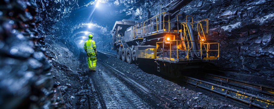 A mining operator oversees operations on multiple screens, showcasing the integration of technology and precision in modern mining in a lit, expansive quarry.
