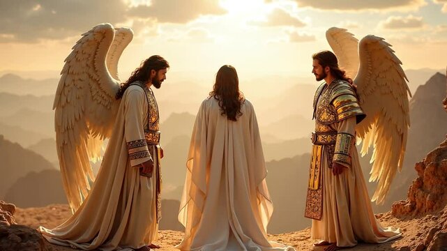 Angels come to minister to Jesus during the temptation