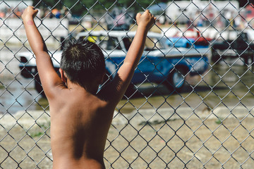 Heartbreaking image of a poor girl with beautiful blue eyes, representing poverty, misery, homelessness, and migrant struggles.