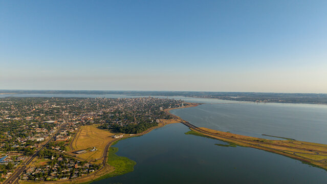 Panoramic aerial photograph of the city of Posadas, located in the province of Misiones, Argentina.