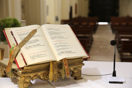 Open missal in Madona del Carmine church, Nardo, Italy. 31.07.2018
