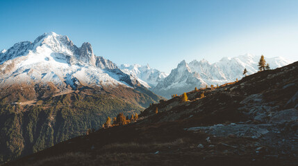 Mountain scenery covered with mist and rain providing a serene backdrop for a photograph with ideal copy space image