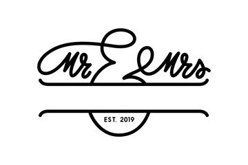 Mr Mrs. Wavy elegant calligraphy spelling for decoration of the wedding invitation