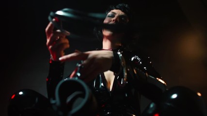 Beautiful dominant brunette mistress girl in black lingerie
