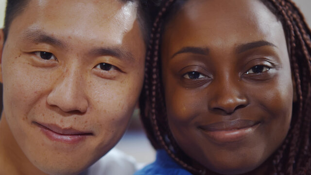 Black African man and Asian Chinese woman in a happy mixed marriage portrait