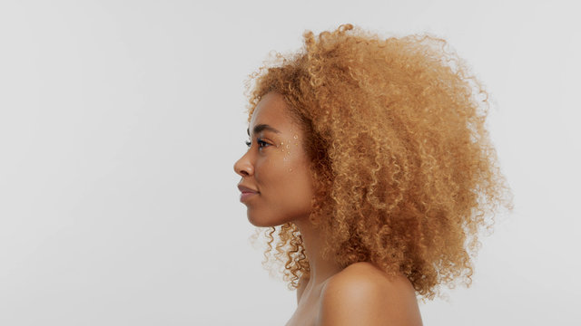 mixed race black blonde model with curly hair