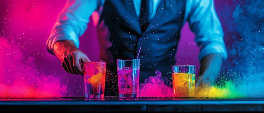 Craft Cocktail Workshop, vibrant colors, dynamic scenes, close-up, photography