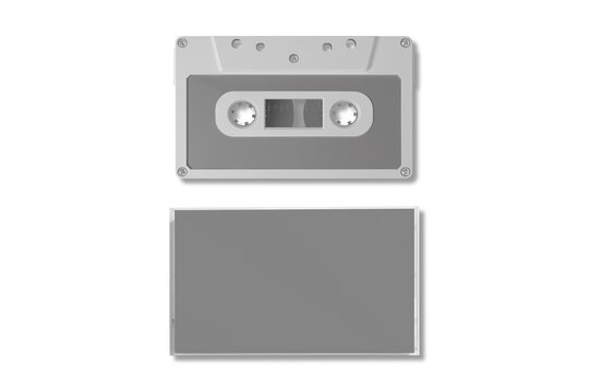 Blank cassette tape box design mockup, isolated, profil side view. Vintage cassete tape case with retro casset mock up. Plastic analog magnetic tape casete clear packaging template. Mixtape box cover.