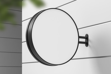 Round mock up sign on white building wall