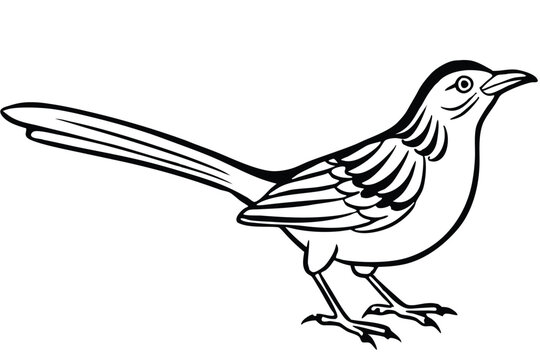 Line Art Illustration of a Mockingbird Bird Profile with Long Tail Feathers