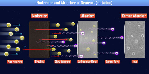 Moderator and Absorber of Neutrons(radiation) (3d illustration)