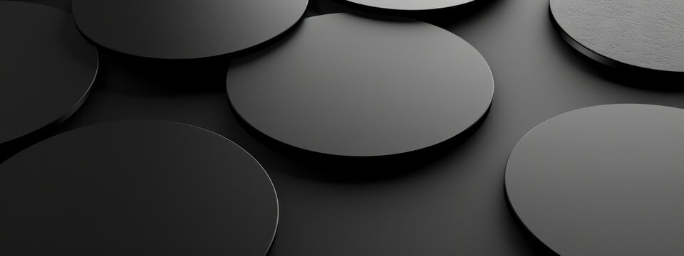 Overlapping Shapes on Black Background for Design, Banner Template, Minimalist Abstract Wallpaper with Copy Space, Simple Geometric Modern Wallpaper for Text Placement and Creative Use