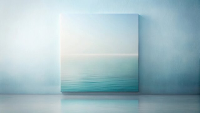 Serene Seascape Canvas Art Piece on a Light Blue Wall in a Minimalist Interior Setting