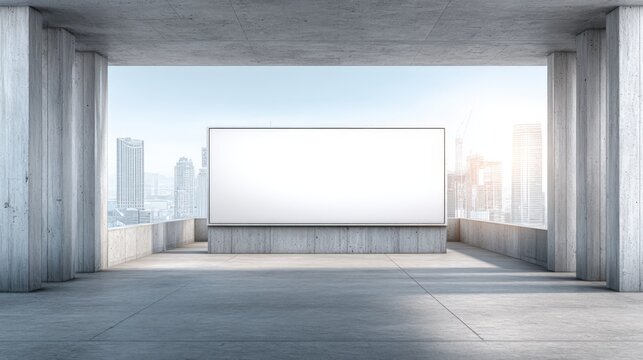 Blank Billboard Mockup on Concrete Structure with City View, Ideal for Advertising and Design Presentation