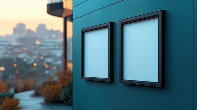 Blank rooftop banner, large poster template on a city mall roof, surrounded by trees, Minimalist, cityscape, commercial space