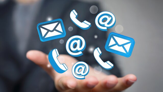 Illustrating interconnected social network avatars held by a man's hand, visualizing modern communication methods and digital connections.